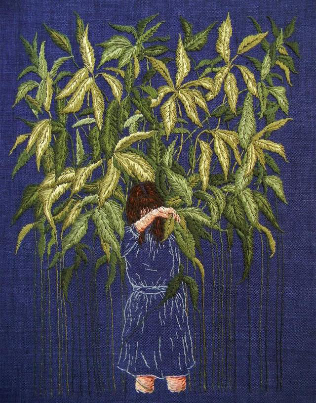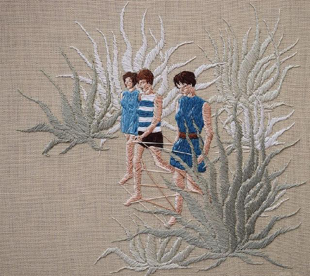 還記得,小時候,和小伙伴一起去探險的時光嗎?看這幅刺繡作品,不就像是那時的我們嗎?