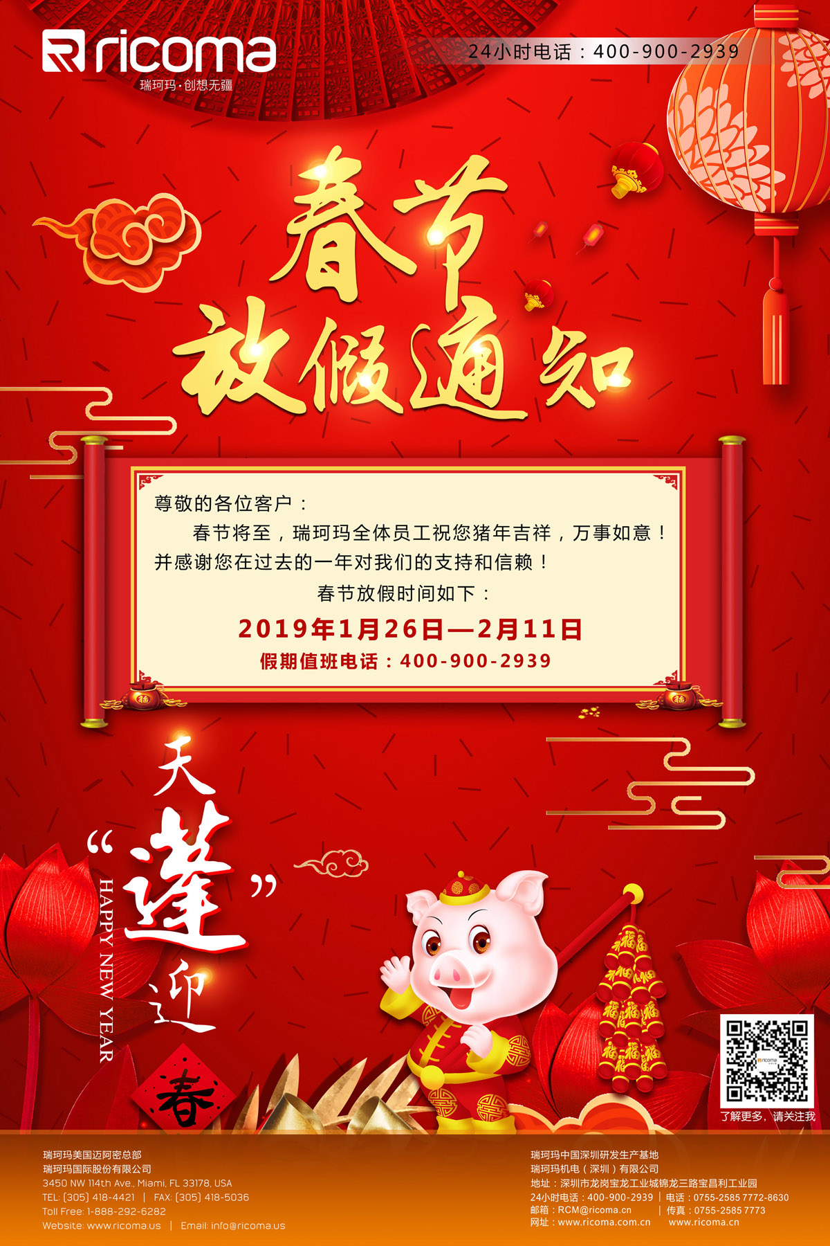 為了讓公司員工過一個歡樂祥和的春節(jié),春節(jié)放假時間如下:假期值班電話:400-900-2939