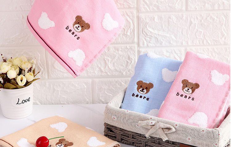 毛巾上可愛的刺繡圖案給人帶來了舒適的感覺。