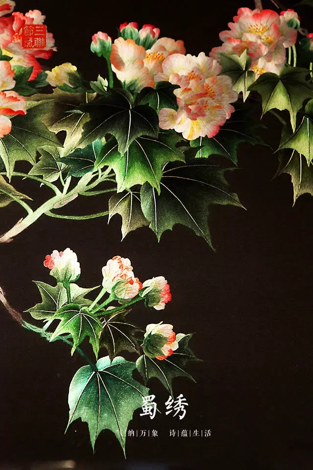 蜀繡,亦稱“川繡”,指以成都為代表的四川刺繡。蜀繡的純觀賞品相對較少,以日用品居多,取材多數是花鳥蟲魚、民間吉語和傳統紋飾等,頗具喜慶色彩,繡制在被面、枕套、衣、鞋及畫屏。清中后期,蜀繡在當地傳統刺繡技法的基礎上吸取了顧繡和蘇繡的長處,一躍成為全國重要的商品繡之一。蜀繡用針工整、平齊光亮、絲路清晰、不加代筆,花紋邊緣如同刀切一般過于齊整,色彩鮮麗。