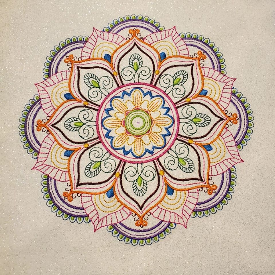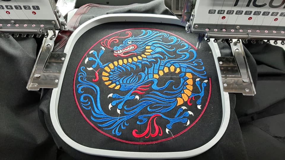 關于陣法密度那么就要看所繡布料是什么材質,但是在特殊的情況下,比如說麻布,那么針法的密度就要密一些。因為針法在繡作的時候,會滲透到布料里面,會有鋸齒,這樣就不好看了。那么繡作在密織布上面的話。密度可以稍放松一些。比如綢緞可以用5-6左右。牛仔布的話可稍密一些,可以用3-4左右。