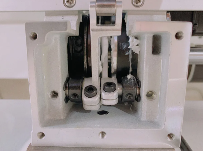 機器挑線凸輪纏線,清理不干凈,就很容易出現機針斷線。