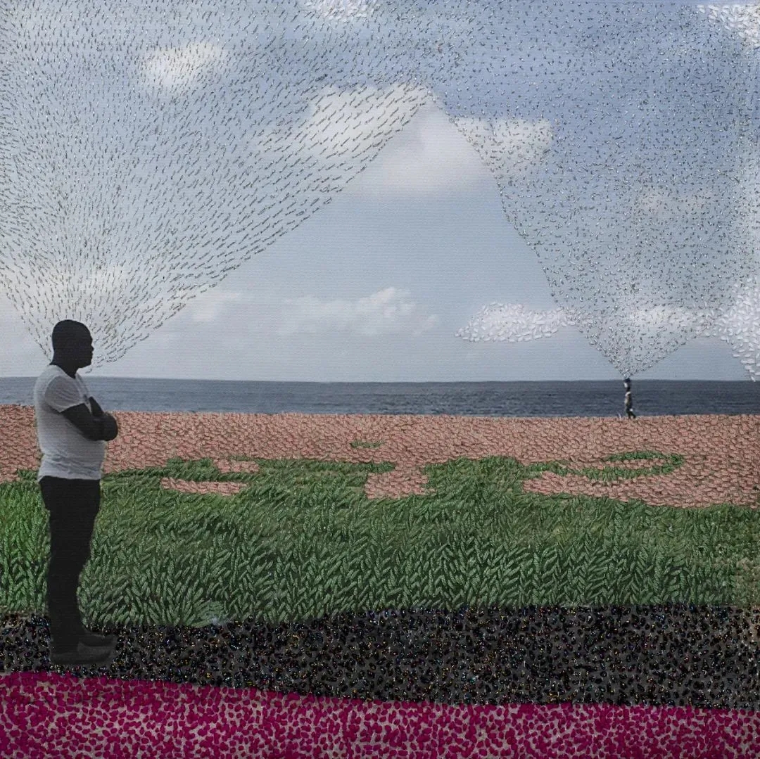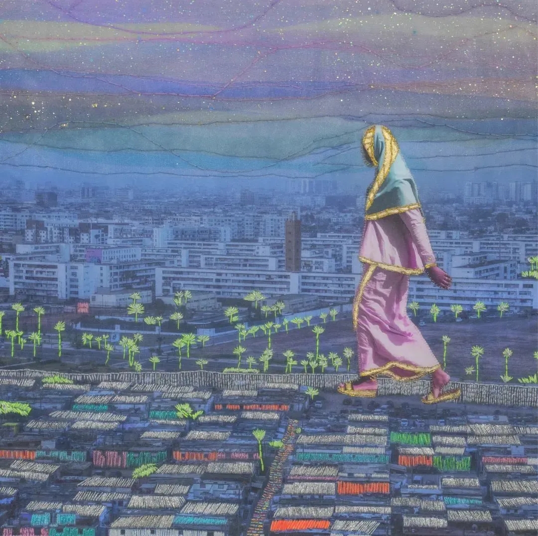 她把照片打印在畫(huà)布上,用刺繡的方式開(kāi)始創(chuàng)作,刺繡也像是一種冥想,帶著療愈的象征。