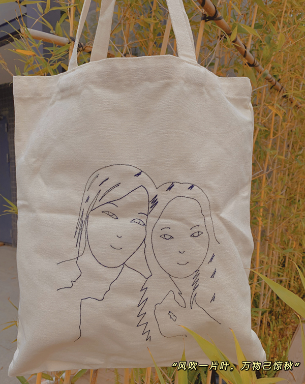 開(kāi)始刺繡,選用一個(gè)白色帆布袋刺繡
