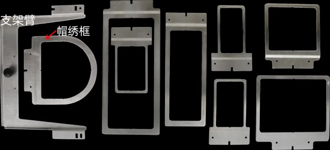 八合一裝置:八合一裝置包含大小不一的8種繡框,專為難以夾框的繡品而設計。其中尺寸大小為184*203mm的帽繡框就非常適合在帽子的背面以及側面繡花,但是不適合繡帽子的正面。