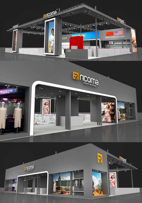 瑞珂瑪展位設計風格獨具匠心,局部的科技元素體現了品牌作為先進縫紉機械領域的品牌實力和創新精神。同時,沉穩的灰黑色調傳遞出品牌的穩健和可靠性,給客戶極大的安心。歐美極簡風格則展現了品牌對于產品的精湛把控和對于細節的高度關注。展位設計是本次展會的一大亮點。