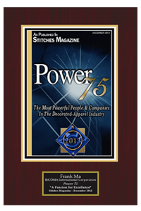 公司 連續(xù)5年 被美國最權威繡花雜志<<Stitches>>評為 行業(yè)最具影響的75家企業(yè)之一