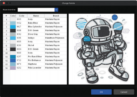 您可以自動打版和編輯花樣、創建字體、將花樣元素轉換為不同的刺繡類型、