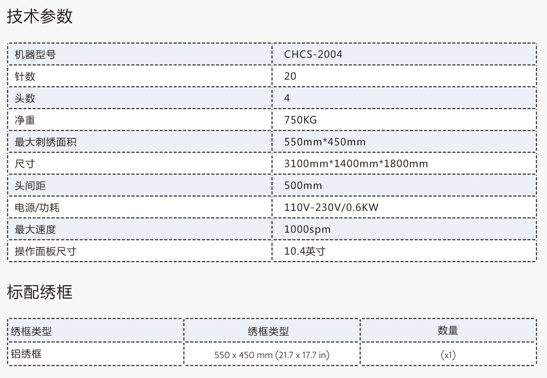 ● 特別設計的80色/針加上550*450mm繡框,