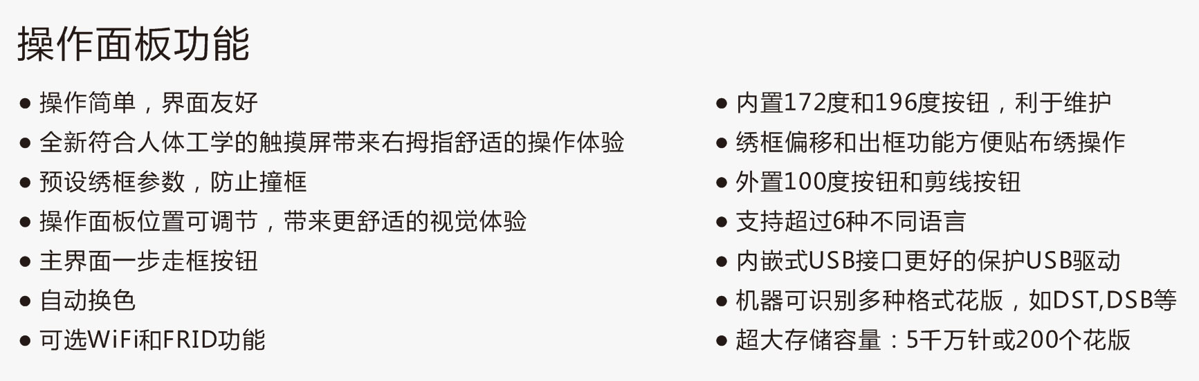 ● 超大存儲容量:5千萬針或200個花版